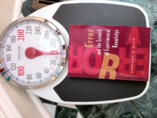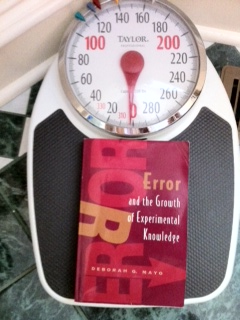 Before leaving base again, I have a rule to check on weight gain since the start of my last trip. I put this off til the last minute, especially when, like this time, I know I’ve overeaten while traveling. The most accurate of the 4 scales I generally use (one is at my doctor’s) is actually in Neyman’s Nursery upstairs. To my surprise, none of these scales showed any discernible increase over when I left. At least one of the 4 scales would surely have registered a weight gain of 1 pound or more, had I gained it, and yet none of them do; that is an indication I’ve not gained a pound or more. I check that each scale reliably indicates 1 pound, because I know that is the weight of the book EGEK (you can even see this on the scale shown), and they each show exactly one pound when EGEK is weighed. Having evidence I’ve gained less than 1 pound, there is even less grounds for supposing I’ve gained as much as 5 pounds, right? Continue reading