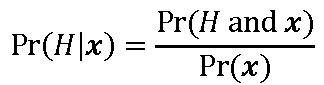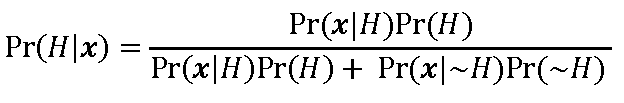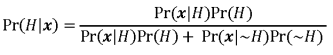 Since Pr(H and x) = Pr(x|H)Pr(H) and Pr(x) = Pr(x|H)Pr(H) + Pr(x|~H)Pr(~H), we get: