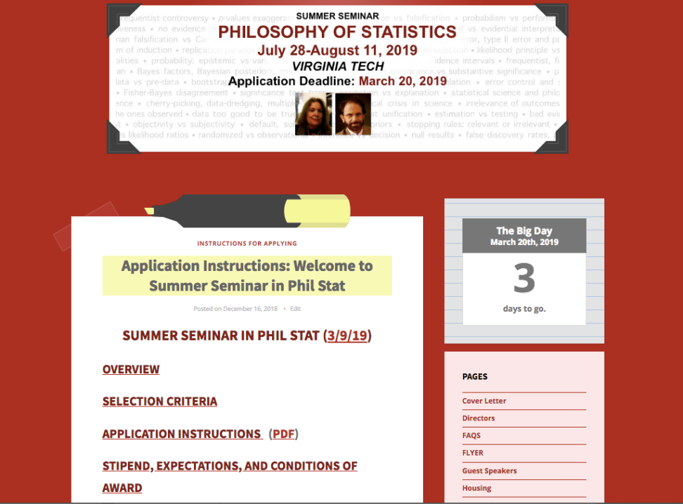 1 Days to Apply for the Summer Seminar in Phil Stat