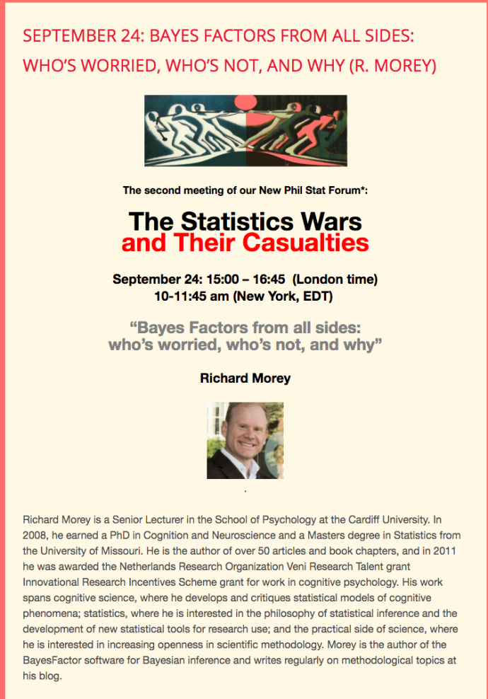 Dear Reader: I began this blog 9 years ago (Sept. 3, 2011)! A double celebration is taking place at the Elbar Room tonight (a smaller one was held earlier in the week), both for the blog and the 2 year anniversary of the physical appearance of my book: Statistical Inference as Severe Testing: How to Get Beyond the Statistics Wars [SIST] (CUP, 2018). A special rush edition made an appearance on Sept 3, 2018 in time for the RSS meeting in Cardiff. If you’re in the neighborhood, stop by for some Elba Grease.