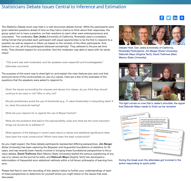 7. Pingback: The Statistics Debate (NISS) in Transcript Form–Question 1 | Error Statistics Philosophy