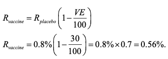 Where Rplacebo & Rvaccine are the ‘true’ rates of infection under placebo and vaccine respectively