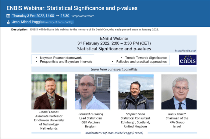 ENBIS will dedicate this webinar to the memory of Sir David Cox, who sadly passed away in January 2022.