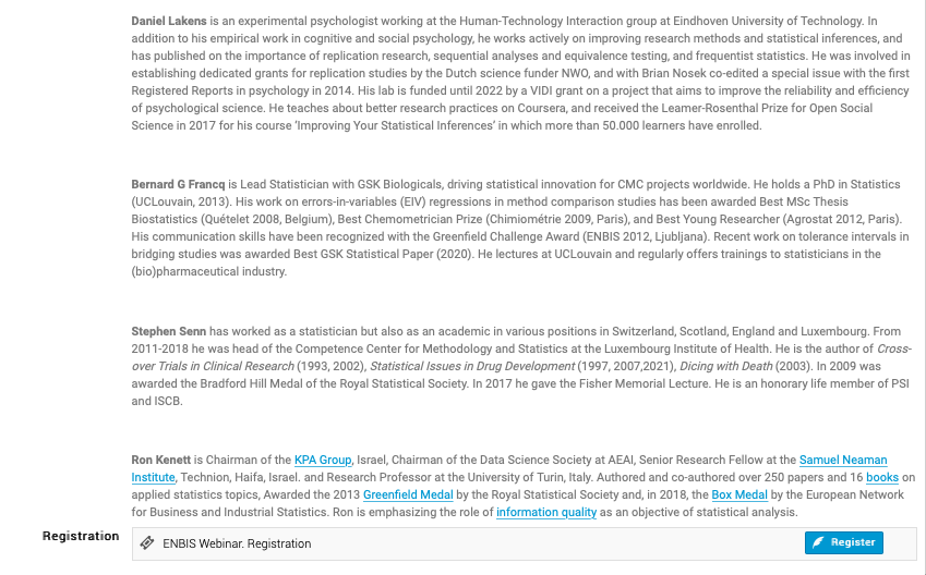 European Network for Business and Industrial Statistics (ENBIS) Webinar: