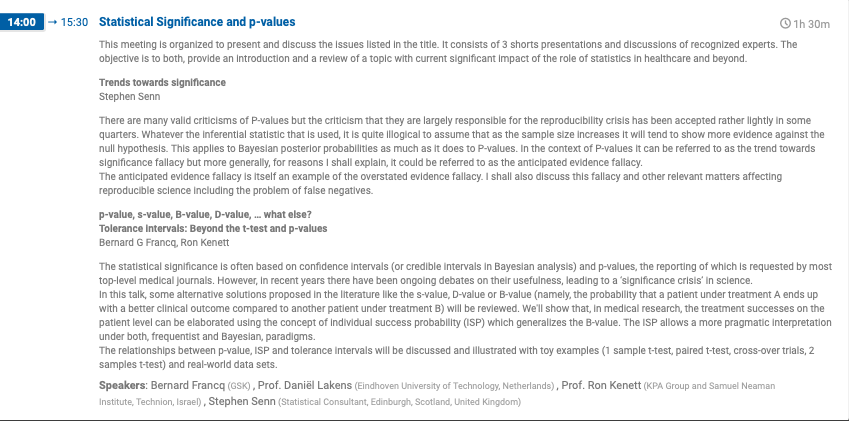 This looks interesting! A bit early for me, but I plan to attend. I’m very glad they will dedicate it to Cox, and happy they haven’t abandoned the use of “statistical significance” in their title! You can find the announcement & link to register here: https://conferences.enbis.org/event/22/