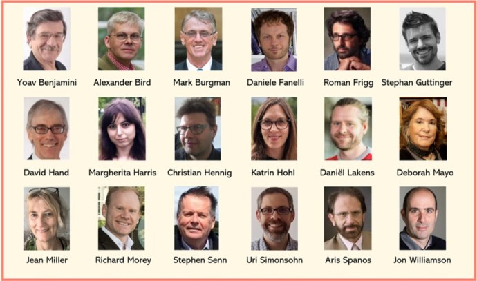 - Yoav Benjamini (Tel Aviv University), Alexander Bird (University of Cambridge), Mark Burgman (Imperial College London), Daniele Fanelli (London School of Economics and Political Science), Roman Frigg (London School of Economics and Political Science), Stephan Guttinger (University of Exeter), David Hand (Imperial College London), Margherita Harris (London School of Economics and Political Science), Christian Hennig (University of Bologna), Daniël Lakens (Eindhoven University of Technology), Deborah Mayo (Virginia Tech), Richard Morey (Cardiff University), Stephen Senn (Edinburgh, Scotland), Uri Simonsohn (Esade Ramon Llull University), Aris Spanos (Virginia Tech), Jon Williamson (University of Kent)