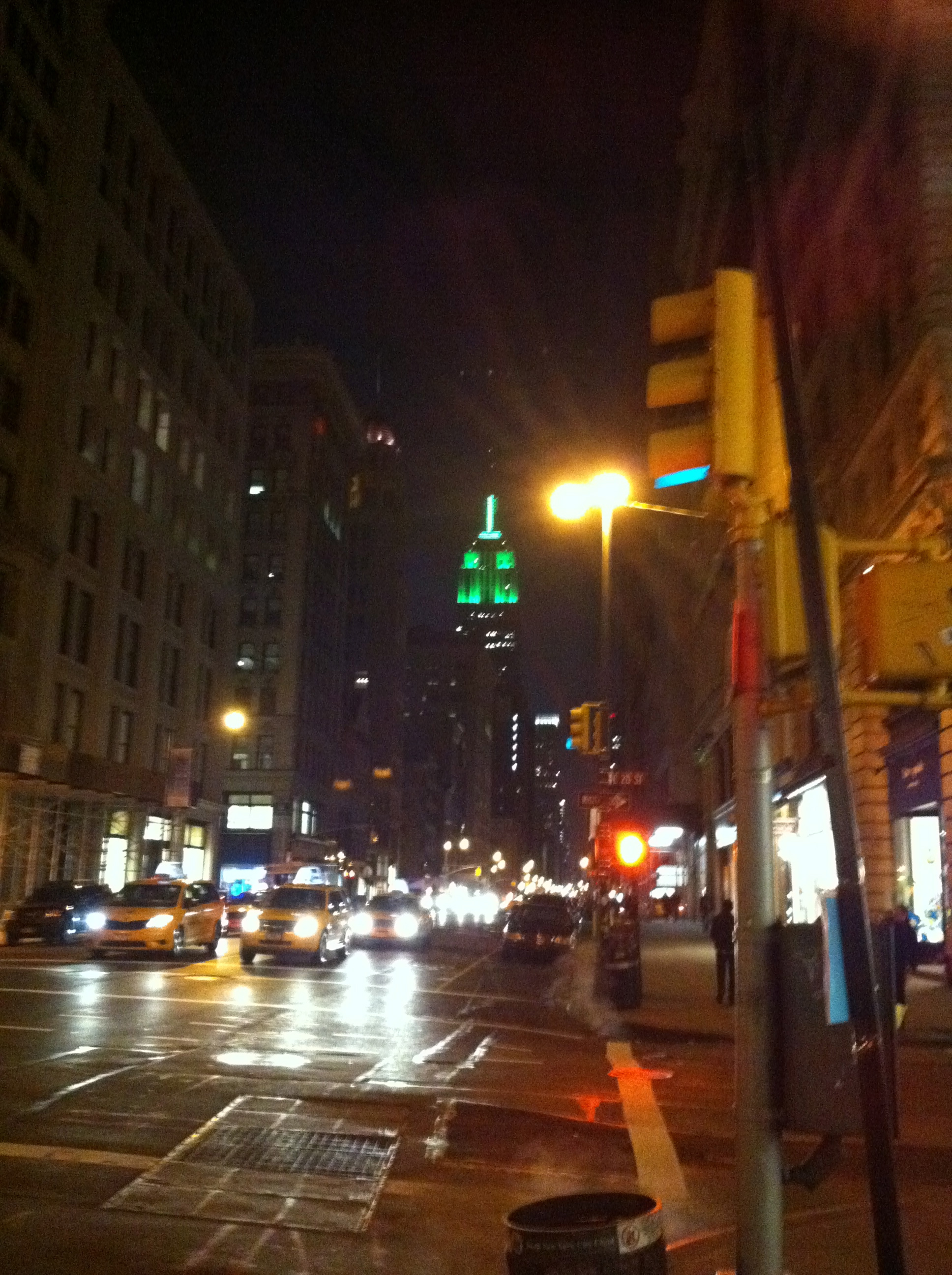 rainy night city street lights